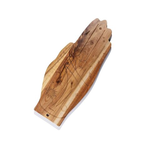 A Tábua de Queijos Místico Tarot é uma peça que une funcionalidade e estética com excelência. Produzida em madeira 100% natural de acácia, ela oferece durabilidade e um acabamento único, evidenciando os veios e tonalidades naturais do material em um tom caramelo elegante. Seu design sofisticado em formato de mão, com detalhes inspirados no universo, transforma qualquer mesa de frios em um cenário encantador, ideal para ocasiões casuais, encontros com amigos ou momentos de lazer. Além de sua beleza, a tábua proporciona praticidade e resistência, sendo perfeita para servir queijos e aperitivos com estilo e conforto.