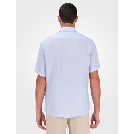 Camisa Masculina Cannes Linen Manga Curta Azul Claro