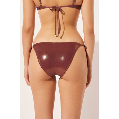 Calcinha De Biquíni Com Laços Metallic Skin Metalizada Bordô
