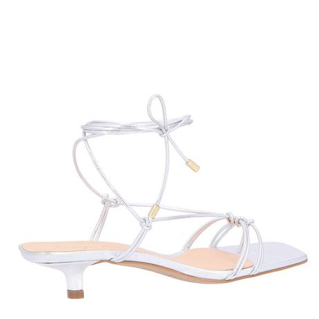 Sandália Metalcolor Luiza Barcelos 13850009 Kitten Heel Bico Quadrado Tiras Ultrafinas Cinza Claro