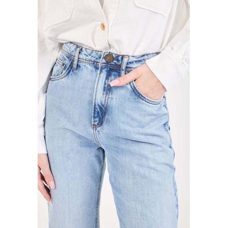 Calça Jeans Reta Cropped Barra Corte A Fio Azul Claro