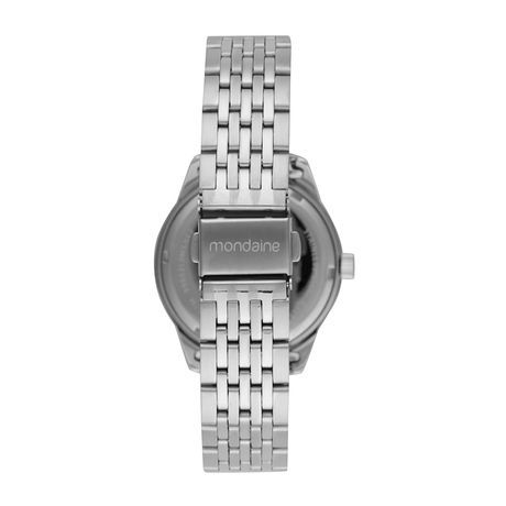 Este kit de relógio feminino Mondaine é a perfeita combinação entre elegância e funcionalidade. Com acabamento em aço cromado, o relógio apresenta um mostrador texturizado com numeração completa, que facilita a leitura e confere um toque sofisticado ao design. A caixa redonda de 37 mm oferece equilíbrio ideal entre presença e leveza no pulso, enquanto a pulseira de corrente em aço inox adiciona brilho discreto e moderno, valorizando qualquer look. A resistência à água de até 5 ATM garante durabilidade e segurança para o uso diário, tornando-o um acessório versátil para ocasiões casuais, trabalho e eventos sociais. O fecho em fivela assegura ajuste confortável e prático, com oito elos removíveis para personalização do tamanho.