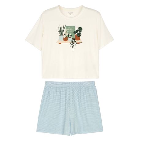 Pijama Feminino Marialícia Malha Modal Manga Curta Bege