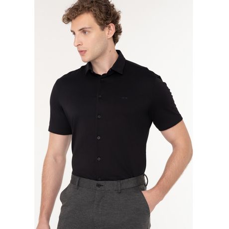 Camisa Masculina Slim Fit Malha Pima Manga Curta Preto