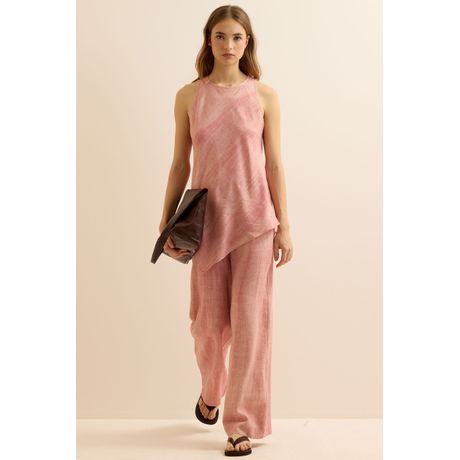 Top Ponta Volare Com Linho Sem Manga Rosa Claro Casual Street