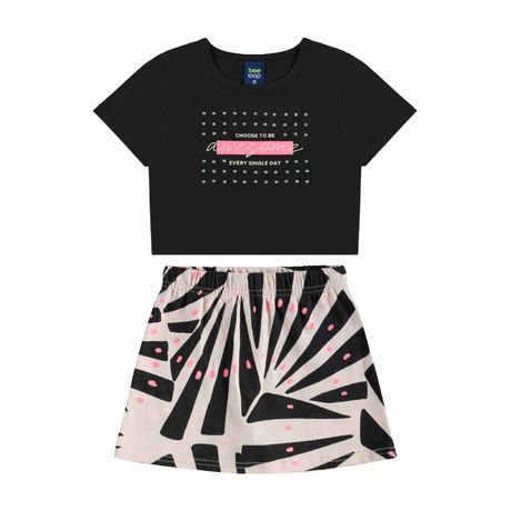 Este conjunto infantil feminino Bee Loop une estilo e conforto em uma peça prática e moderna. Confeccionado em cotton com alta porcentagem de algodão e elastano, oferece toque macio e elasticidade que acompanham os movimentos da criança com liberdade e conforto. A blusa cropped de modelagem justa e mangas curtas traz um charme especial com estampa adornada por glitter e strass, garantindo brilho e sofisticação ao visual. O short-saia, com cós elástico e estampa listrada, combina funcionalidade e design descolado, ideal para o dia a dia em dias quentes da primavera e verão. A cintura média e o comprimento curto proporcionam ajuste seguro sem abrir mão da leveza, já que o conjunto não possui forro. Perfeito para ocasiões casuais, o conjunto é versátil para passeios, lazer e momentos descontraídos.