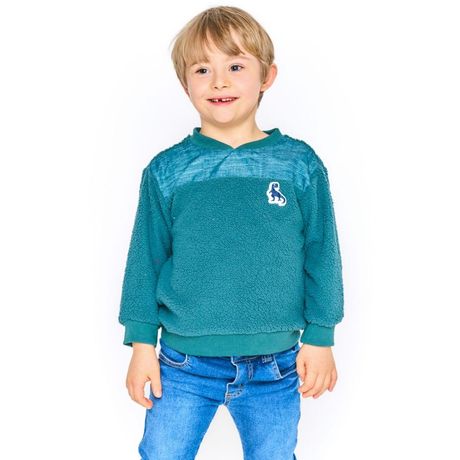 Casaco Dino Infantil Felpuda Manga Longa Azul Turquesa