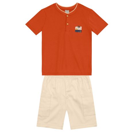 Deixe seu pequeno estiloso com o conjunto infantil da Mundi. A camiseta é feita em meia malha, com mangas curtas e gola redonda, além de abertura parcial por botões. A bermuda em sarja super comfort possui cós elástico, garantindo liberdade de movimento. Ideal para o dia a dia, esse look combina conforto e sofisticação. Perfeito para aventuras e brincadeiras, seu menino vai adorar!