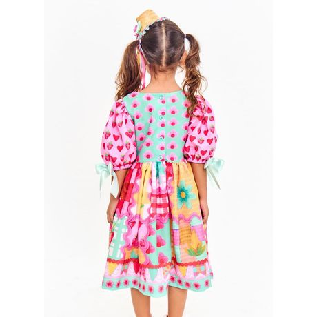 Vestido A Festa Vai Começar Balance Manga Curta Bufante Rosa