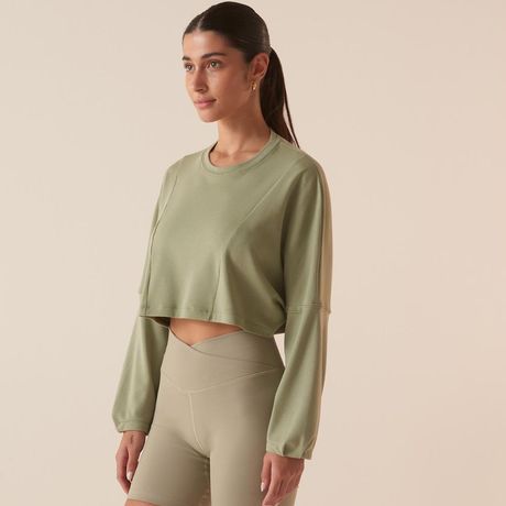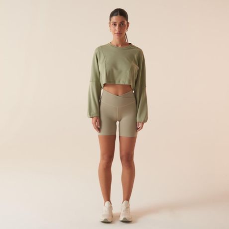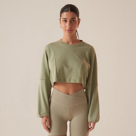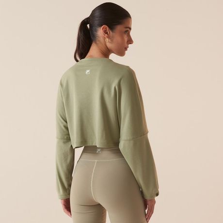 Casaco Fila Touch Gym Feminino Cropped Manga Longa Malha Verde Oliva