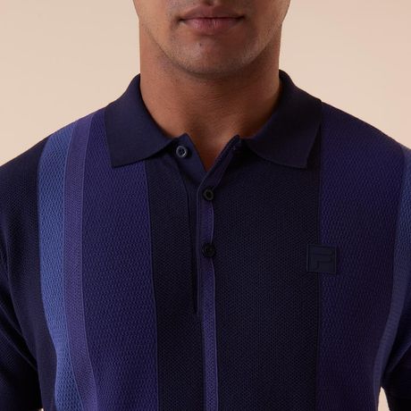 Polo Masculina FILA Palazzo Slim Listrada Malha Texturizada Manga Curta Azul Marinho