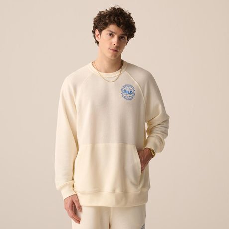Casaco Fila One World Masculino Oversized Moletom Desagulhado Manga Longa Raglan Bege Claro