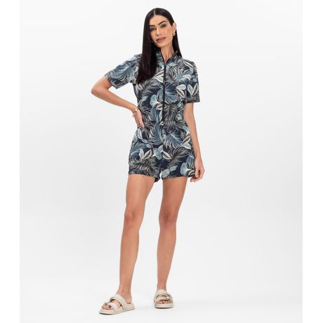 Macaquinho Feminino Estampado Manga Curta Azul Marinho