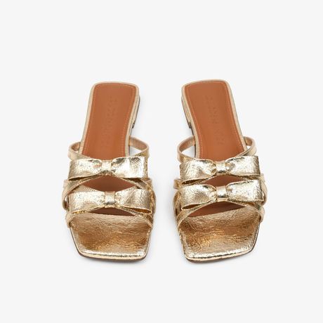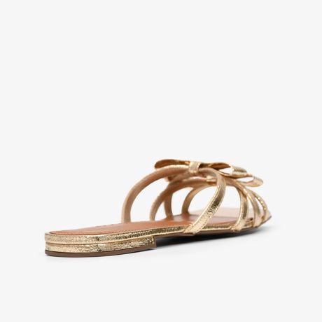 Sandália Rasteira Em Couro Metalizado Dourado Laços Loucos & Santos