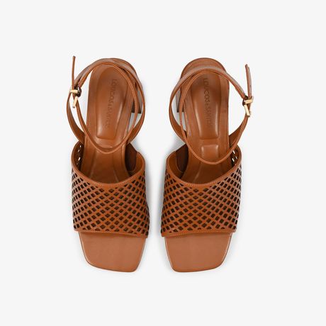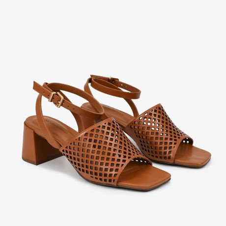 Loucos & Santos Sandália Vazada Salto Bloco Médio Couro Napa Caramelo