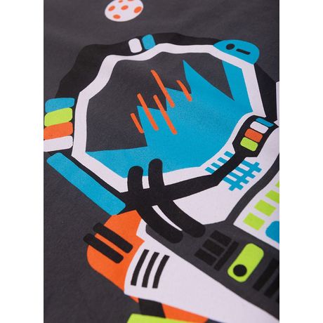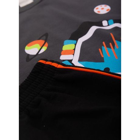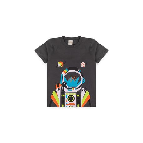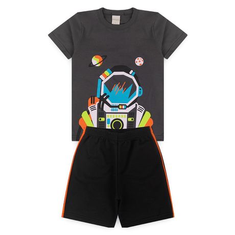 Conjunto Molekada Verão Menino Astronauta Camiseta Manga Curta Bermuda Moletom Cinza