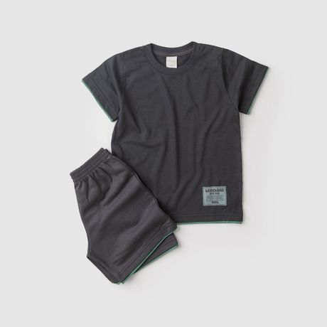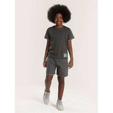Conjunto Verão Menino Molekada Camiseta Meia Malha E Bermuda Bainha Sobreposta Cinza