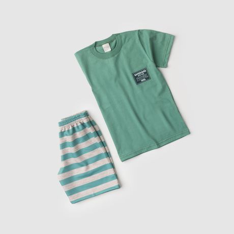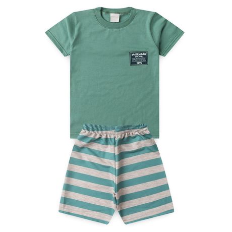 Conjunto Verão Menino Verde Camiseta e Bermuda Listrado