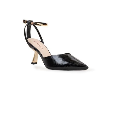 Scarpin Bebecê Salto Fino Bico Fino Com Tira No Tornozelo Preto