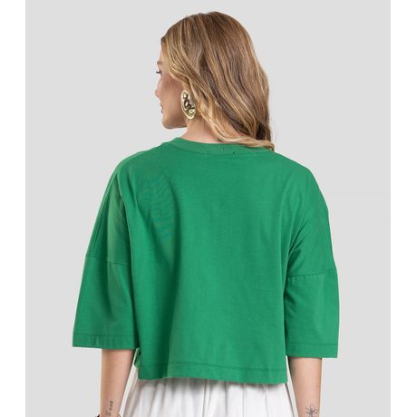 T-Shirt Feminina Cropped Dianna Meia Malha Manga Curta Verde