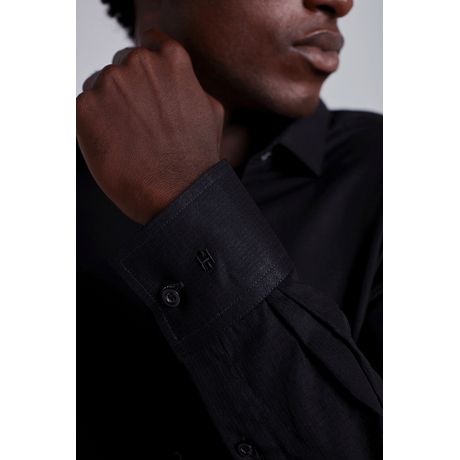 Camisa Social Slim Fit Algodão Egípcio Manga Longa Preto