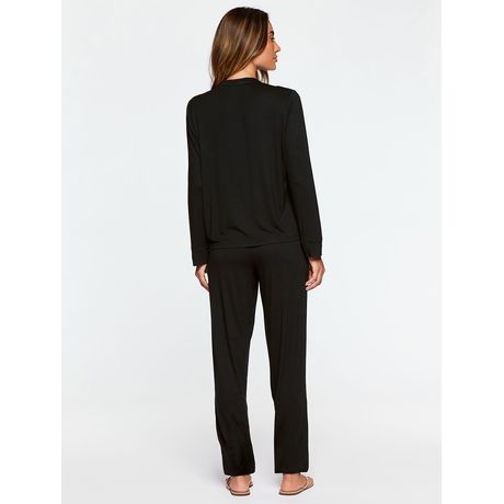Pijama confeccionado em viscolycra, com camisa manga longa, decote em V e vista com botões personalizados exclusivo Valisere. A calça, possui detalhes em lastéx no cós.