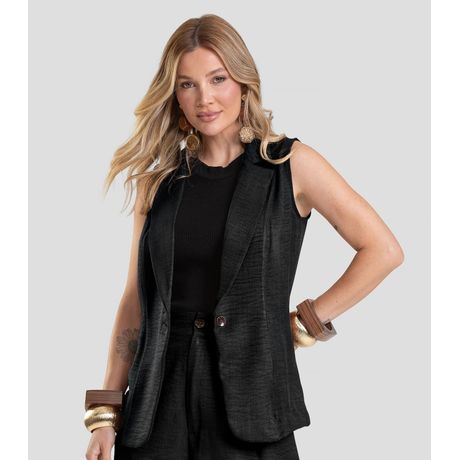 Colete feminino de acabamento refinado, confeccionado em poli linho (100% poliéster) que entrega toque leve e aparência sofisticada. A gola dupla entretelada, cavas e vista com pespontos reforçados garantem estrutura e maior durabilidade, enquanto os caseados funcionais e o fechamento por botão oferecem praticidade no uso. O recorte alongado do busto à barra e a barra interna arredondada com abertura adicionam modernidade e caimento elegante. Sem bojo e sem mangas, o comprimento médio facilita sobreposições, tornando o colete versátil para looks formais de trabalho, eventos sociais ou composições casuais e contemporâneas.