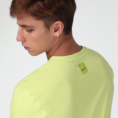 Camiseta Fila Natural Masculina Meia Malha Manga Curta Amarelo Neon