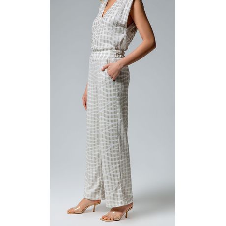 Calça Maria.Valentina Reta Listrada Paetê Cós Elástico Cinza Claro