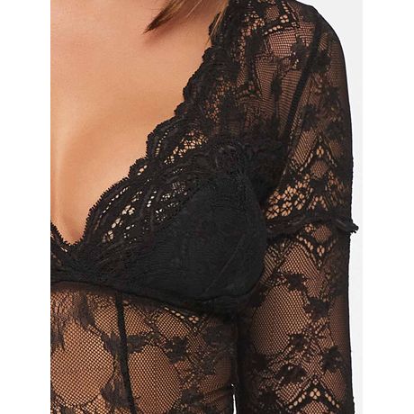 Body Pétala Manga Longa Em Renda Com Bojo Removível Branco